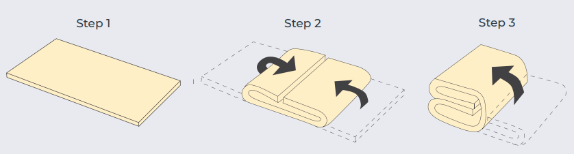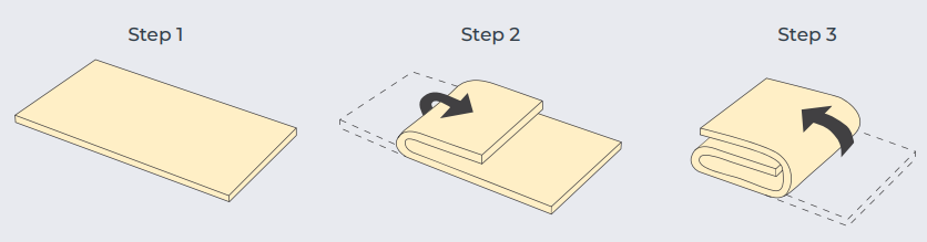 With the bookfold or full turn method the pastry is rolled into a rectangle (step 1), the two ends are folded to the centre (step 2) and the whole folded again in half (step 3). This represents a full turn (ie 2 full turns is equivalent to 3 half turns). Using only book folds is not recommended for best results.