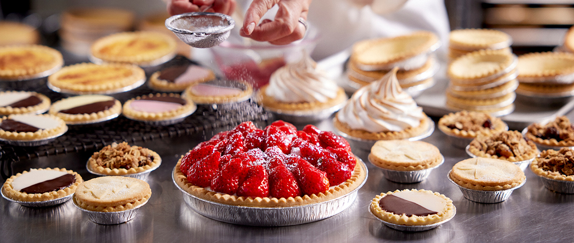 Amplify your bakery business with our latest range of sweet short crust pastry shells packed in ready-to-use foils. Made with high quality EOI Monarch vegetable margarine and premium Australian flour. Available as frozen ready-to-bake; or pre-baked shells that are ready-to-use immediately. Both options are vegan and available in multiple convenient sizes. Ideal for lemon, jam, chocolate, custard and caramel tarts; family fruit flans, or fruit mince pies with Christmas designed lids. Explore our full range of pastry options, including shelf-stable pastry shells for ready-to-use convenience and unbaked frozen pastry shells for fresh baking on demand. For more specialised applications, discover our unbaked frozen tart shells, ideal for consistent, high-quality tart creations.